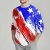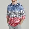 Moda Masculina Casual Estampa Dia da Independência Gola Manga Sete Pontos Top T-shirt