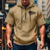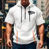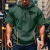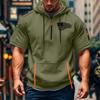 Camiseta de Verão Masculina Estampada Bolso com Zíper Manga Curta Moletom com Capuz Moletom Casual Masculino Tamanho Grande Esportivo