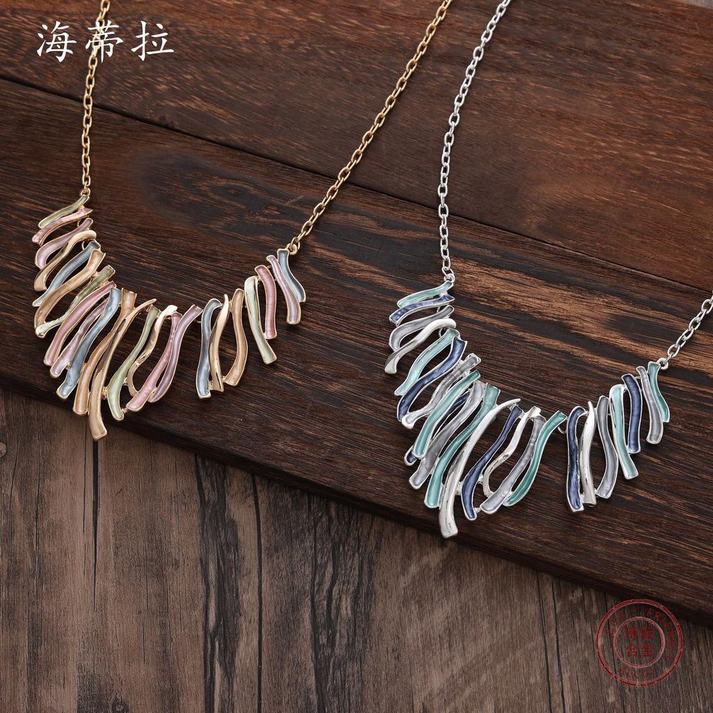 New colored line alloy necklace, irregular line dripping oil women's niche neck chain