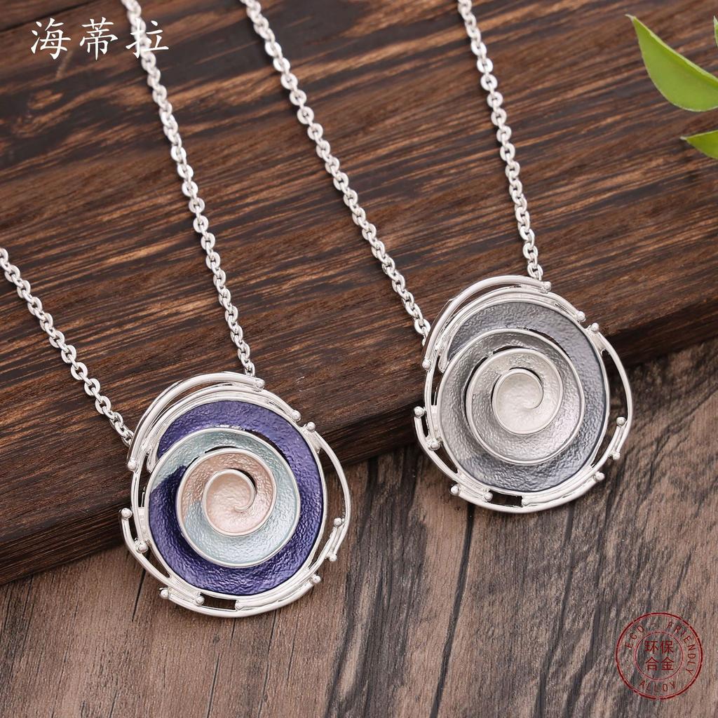 New rose hollow geometric pendant, colorful oil flower women's versatile alloy necklace
