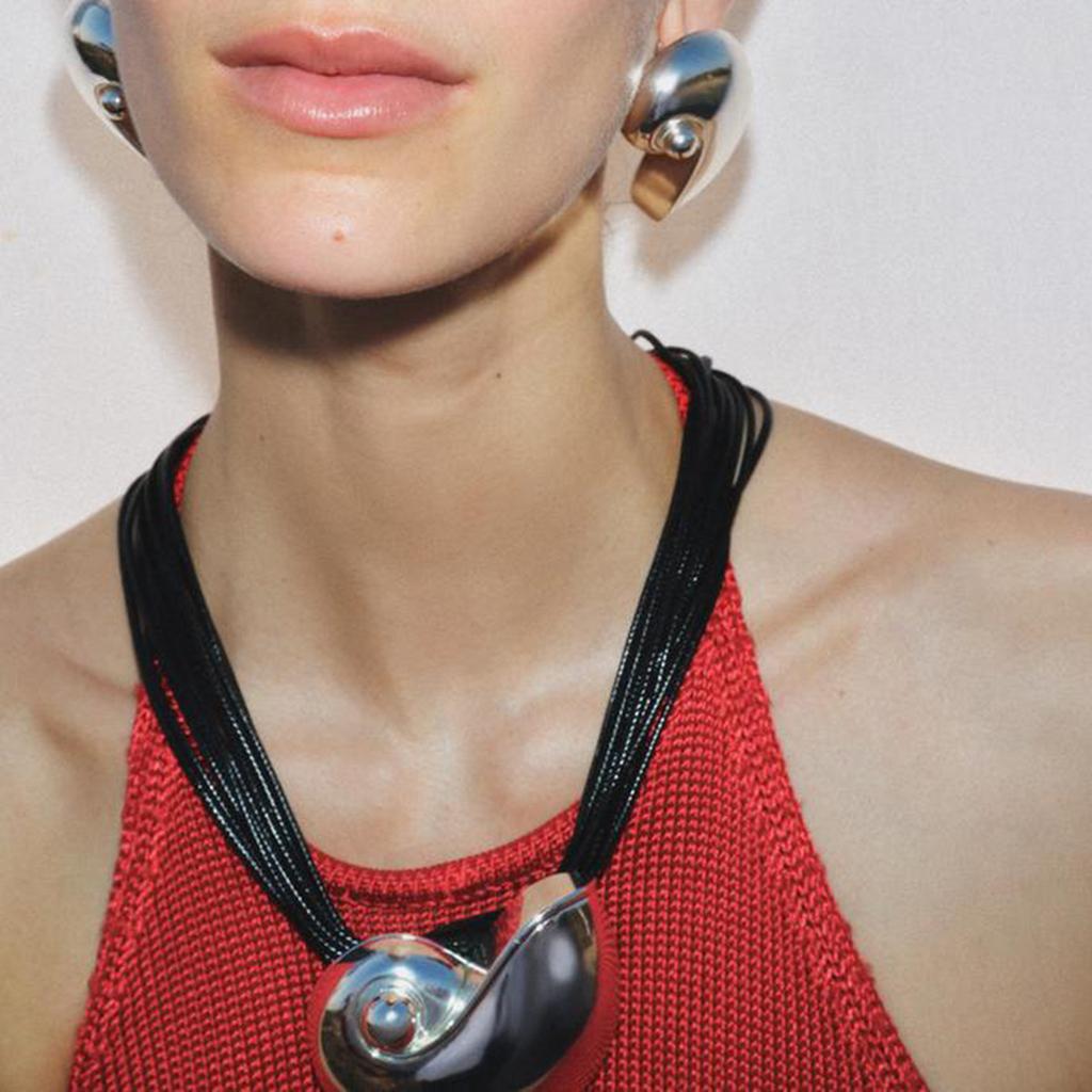 Tooxika Glossy Conch Pendant Necklace Trendy Exaggerated Geometric Waxed Wire Ocean Style Necklace