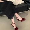 New sandals women's black pointed head bow high heels bag head with buckle stiletto elegant single shoes