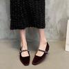 Square head single shoes women's early spring new velvet surface low heel light mouth thick heel temperament Mary Jane shoes