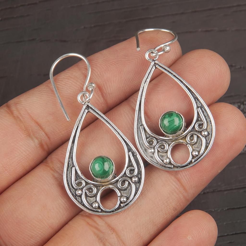 Brincos de Malaquita, Joias de Prata de Lei 925, Presente Para Mulheres Brincos Feitos à Mão Joias de Pedras Preciosas
