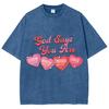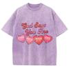 Four Pink Heart Letter Print Women's T-Shirt Washed Fabric Loose Plus Size Short Sleeve Student Sweet Cool Cute Top
