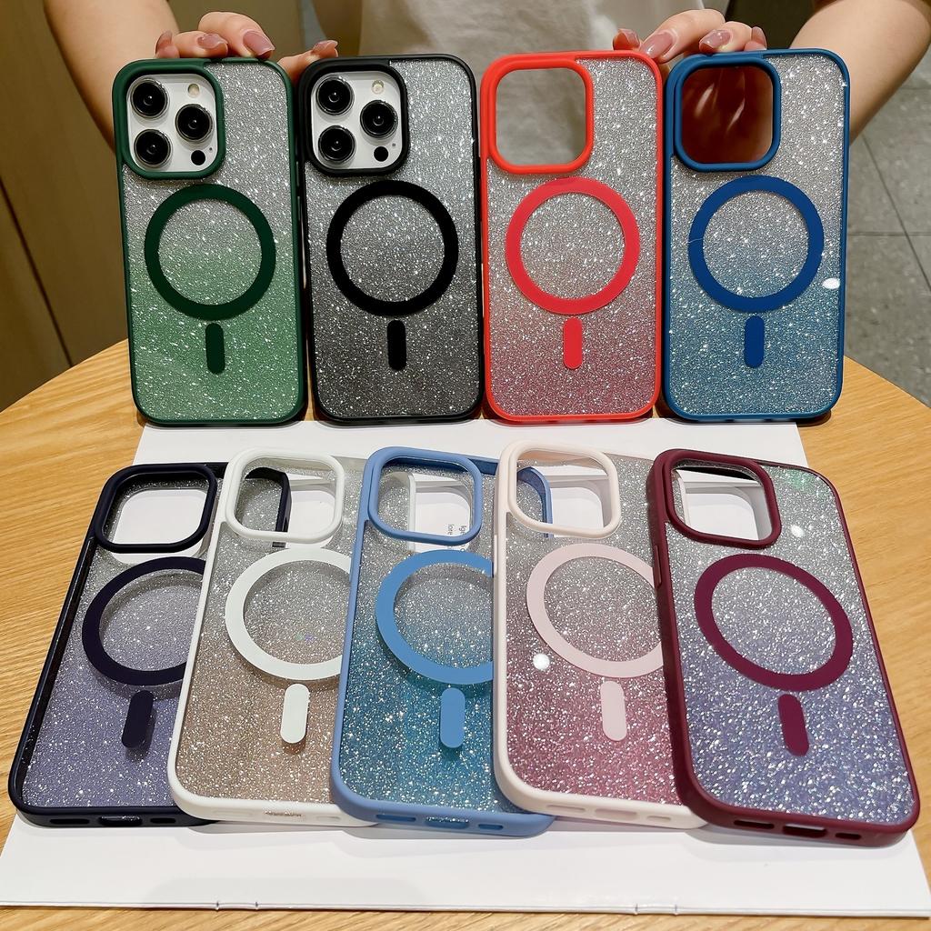 The IPhone16 Is Equipped with An Apple 14/15 Magnetic Phone Case, Featuring A Skin-feel 13promax Glitter 12 Acrylic Drop Resistance