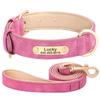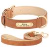 Conjunto Coleira e Guia de Couro PU Personalizado para Cães Coleiras Personalizadas para Cães Placa de Identificação Gravada Gratuita para Cães Pequenos Médios Pitbull Labrador