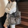 New Versatile Retro Denim Bag Women's Shoulder Crossbody Harajuku Student Canvas Large Capacity Mailman Bag