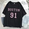 Vintage Womans Acid Wash T-Shirts Boston Athletics Badge Prints Tops Crewneck Cotton Oversize Tee Shirts Clothes