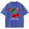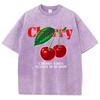 Casual Womens Acid Wash T-Shirts Cherry Vibes Always In Season Prints Tees Distressed Oversize Cotton Short Sleeve Clothes
