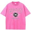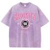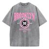 Camisetas Femininas Lavadas Brooklyn Wonderful World Dreamer Estampadas Algodão Oversize Gola Redonda Roupas de Rua
