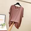 T-shirt Casual Plus Size de Algodão com Decote V e Manga Morcego Estilo Coreano