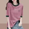 Women's Korean Style Color Block Patchwork Slimming Short Sleeve T-shirt