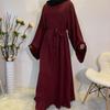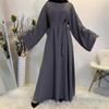 Dubai Mais Vendido Cor Lisa Tamanho Grande Vestido Muçulmano com Cordões 6394