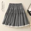 Foto real verão novo coreano xadrez renda retalhos cintura elástica saia curta feminina cintura alta fina saia bolo