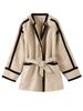 Casaco Curto Feminino VAYLA Cintos Listrado Moda Cor Contrastante Jaqueta Nova Feminina Chique Elegante Cintura Alta Roupa Exterior Feminina
