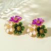 Dripping oil square flower bouquet stud earrings small fresh Mori earrings fashionable retro high-end earrings