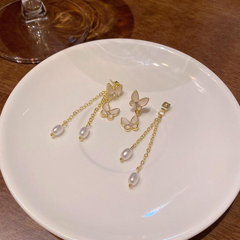 Light luxury niche high-end asymmetrical butterfly earrings women's spring and summer small fresh fashion temperament stud earrings