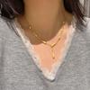 Gold water drop fringed necklace women's round beads exquisite retro court style neck chain light luxury high-end collarbone chain