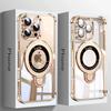 Capa Magnética Giratória com Suporte para iPhone 16 Pro Max, Capa de Telefone em PC+TPU com Película Brilhante para Lente da Câmera