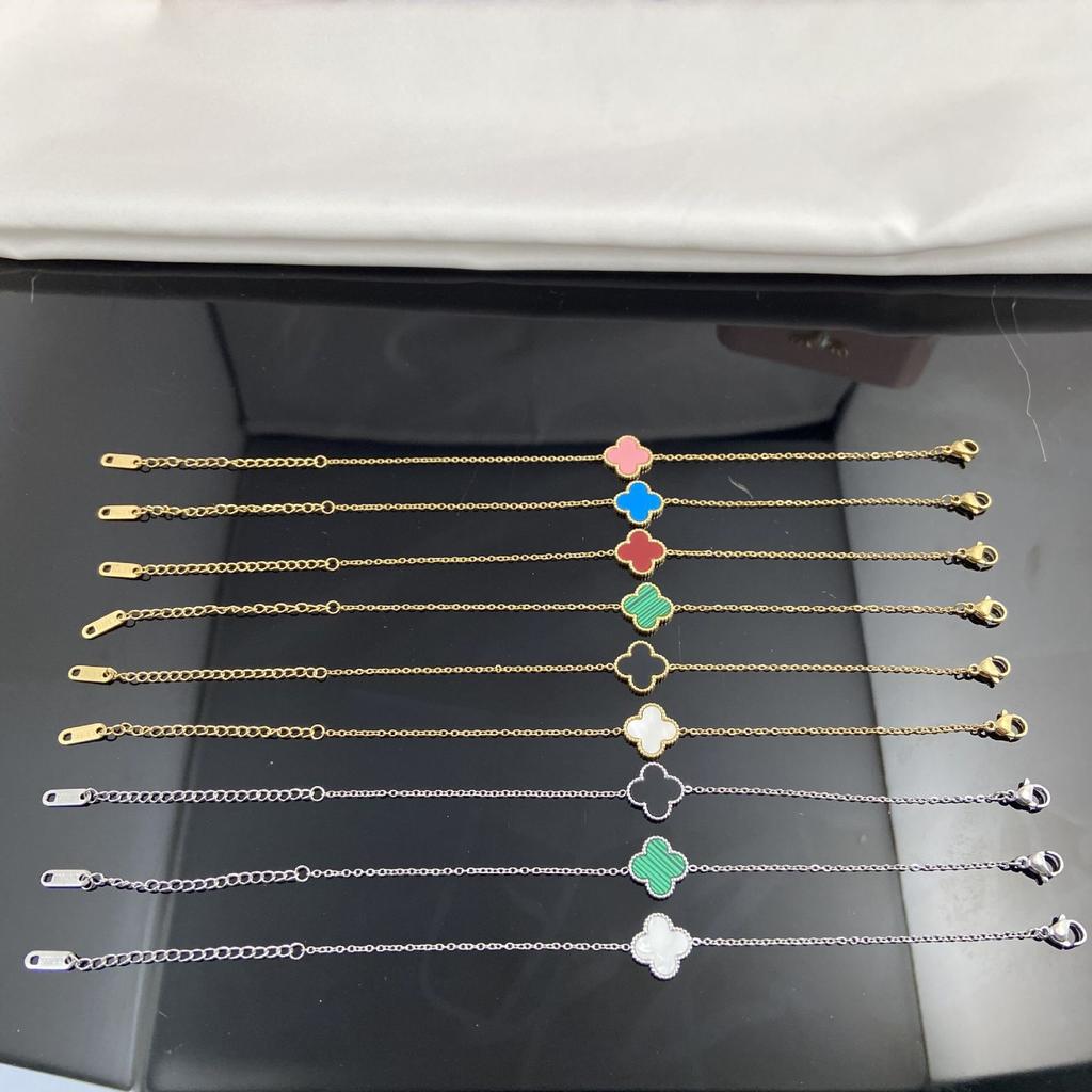 Pulseira de Aço Titânio 13MM Trevo de Quatro Folhas Pulseira Simples Feminina Estilo Jardim de Flor Única Não Desbota Pulseira