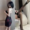 National style short skirt retro sexy cross Spice girl backless printing temperament waist slim and thin jumpsuit