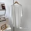 Vestido Camiseta Modal Feminino de Manga Curta - Comprimento Médio, Caimento Solto, Estilo Preguiçoso Roupa de Dança