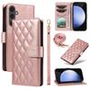 Para Samsung Galaxy S24 FE Capa Carteira Couro Losango Capa de Telefone com Alça de Ombro, Alça de Pulso