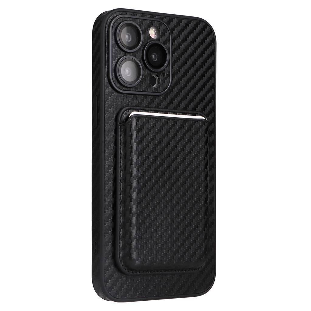 Para Capa iPhone 15 Pro com Porta-Cartões Magnético Removível Textura Fibra de Carbono Capa de Telefone