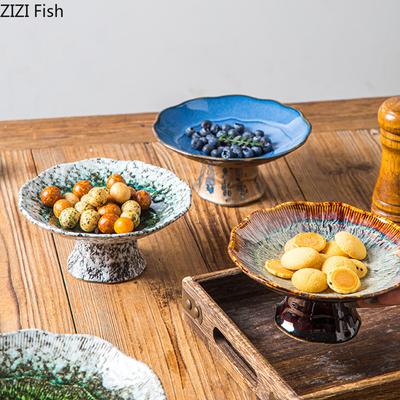Prato de Dim Sum de Pernas Altas em Estilo Chinês Prato de Frutas de Cerâmica Vintage Prato para Doces e Snacks para Sala de Estar Doméstica Louça de Mesa para Cozinha
