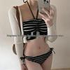 High-End Korean Striped Black Bikini Swimwear for Women