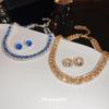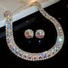 Colorful diamond studded earring necklace two-piece set, light luxury, fashionable, collarbone chain, high-end, Necklaces Earrings Set