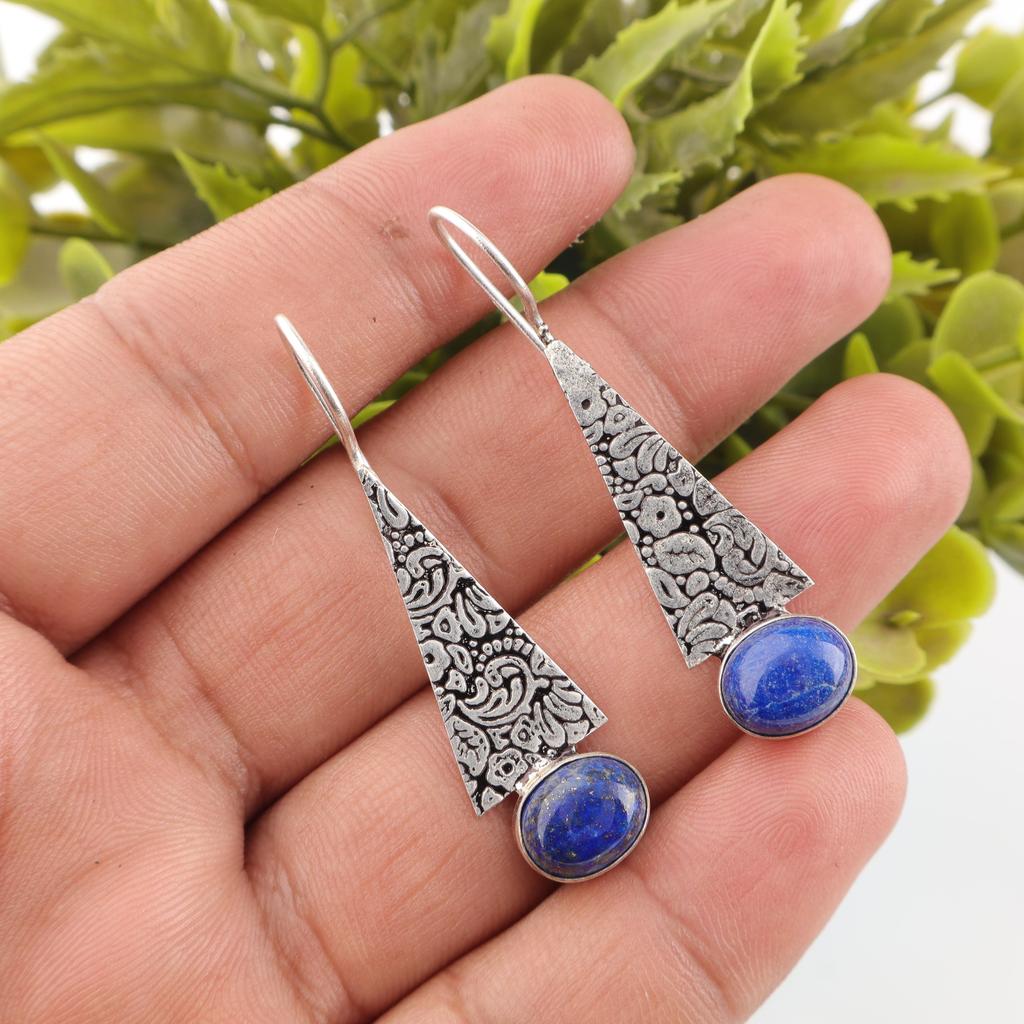 Lapis Lazuli Gemstone Earrings Handmade Gemstone Jewelry, 925 Solid Sterling Silver Earrings, Unique Design Jewelry Earrings
