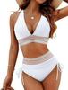 Eleve o seu estilo de praia com este fato de banho sofisticado, desenhado exclusivamente para mulheres.. Este fato de banho apresenta um deslumbrante decote em V profundo e um corte de cintura alta, equilibrando perfeitamente fascínio e conforto.. O padrão sólido adiciona um toque de elegância, tornando-o uma adição atemporal à sua coleção de fatos de banho.. Confeccionado em poliéster de alta qualidade, garante um ajuste confortável e favorecedor que realça sua silhueta.. O design dividido estrategicamente posicionado adiciona um toque de brincadeira, tornando este biquíni uma escolha ideal para aqueles que querem marcar presença enquanto aproveitam o sol.