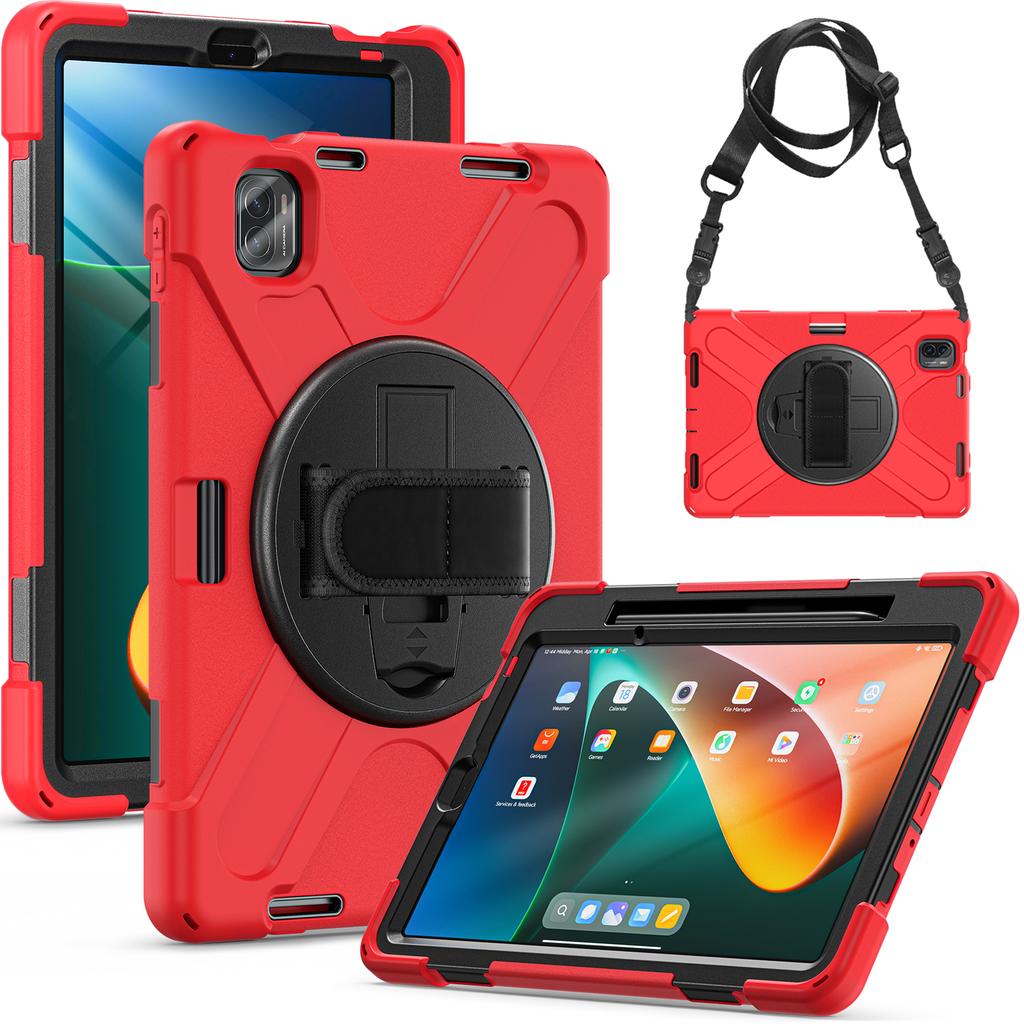 For Xiaomi Pad 5 Case Hand Strap Kickstand PC+Silicone Tablet Cover with Shoulder Strap