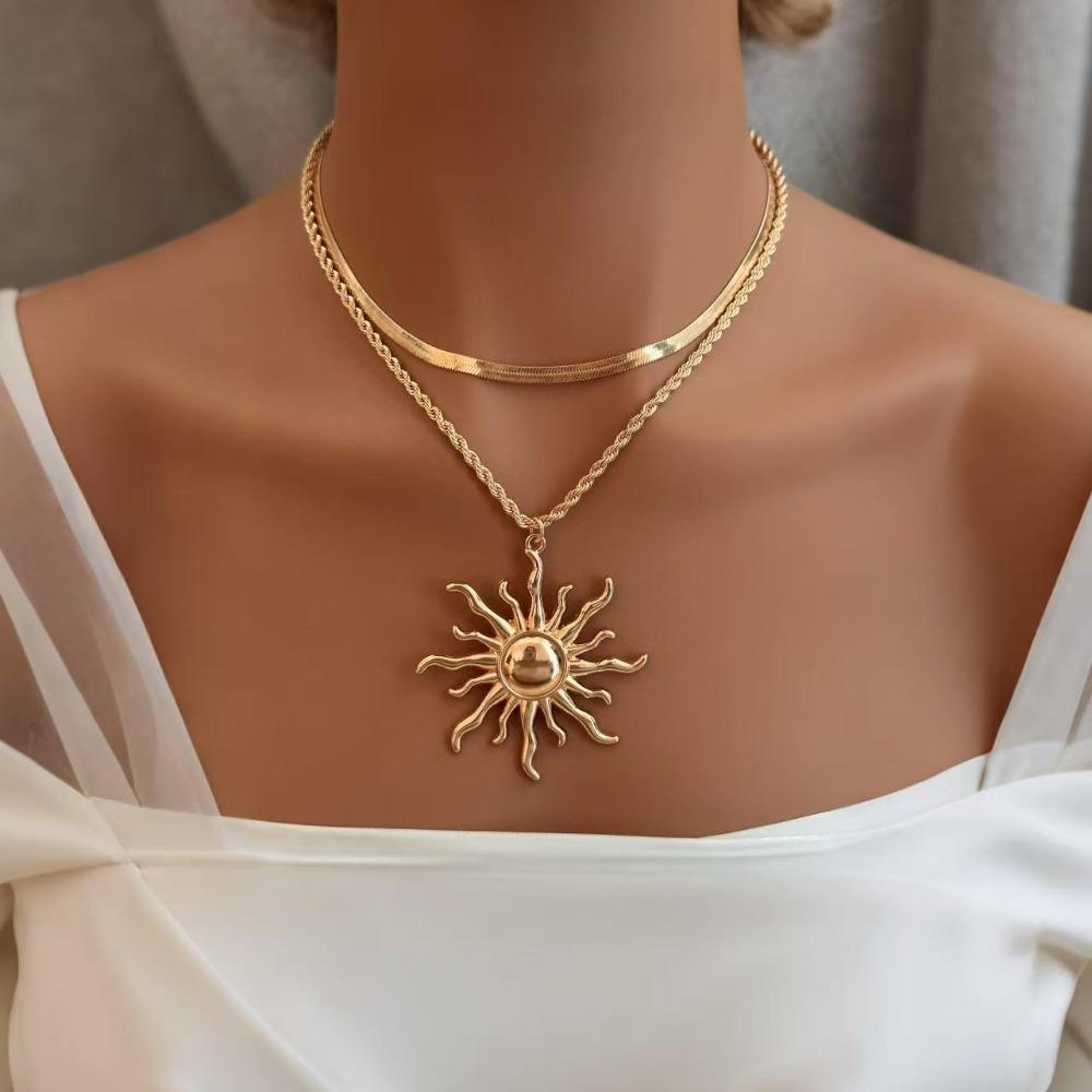 2 Peças/Conjunto Colar com Pingente de Girassol da Moda Estilo Europeu Americano Joias para Clavícula para Mulheres