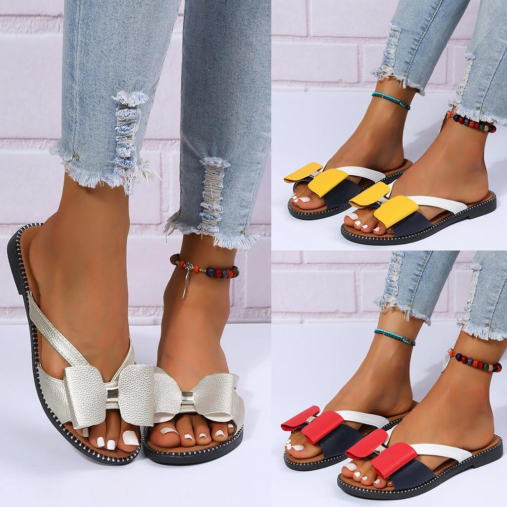 Summer Open Toe Slippers With Bow Dressy Fashion Indoor Outdoor Slippers Casual Comfy Summer Beach Shoes
