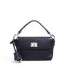 This bag has a stylish, compact flap - over silhouette crafted from top - layer cowhide leather. It features a smooth, glossy surface, a unique metal buckle closure, and dual carrying options (handle and adjustable shoulder strap), creating a fashionable and elegant look.