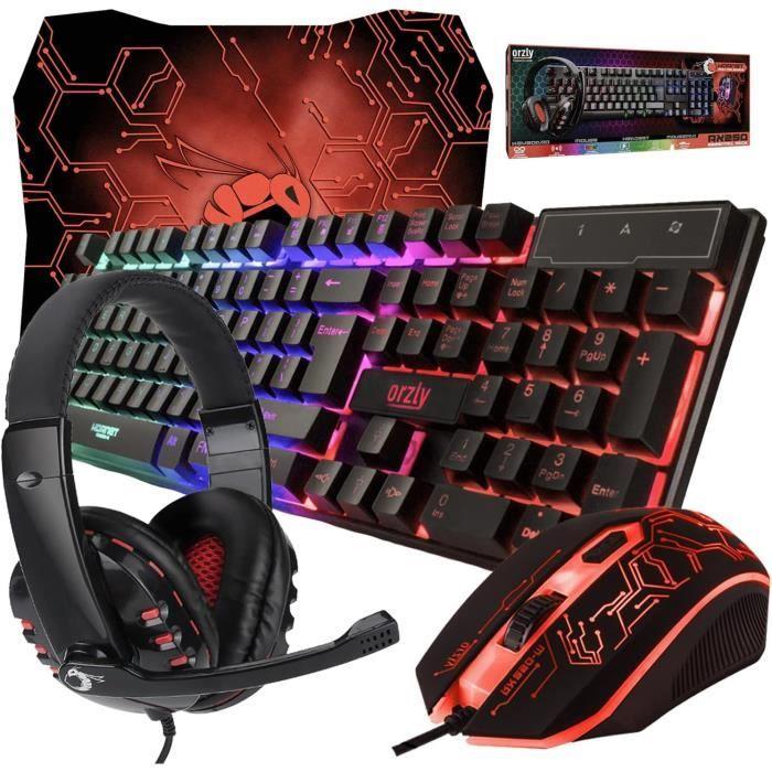 Kit de jeu 4 en 1 - Orzly - RX250 - Clavier rétroéclairé AZERTY - Souris 3200 DPI - Casque stéréo