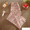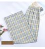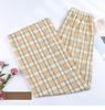 Calça xadrez feminina verão fina cintura alta drapeada solta estreita reta calças largas calças casuais