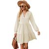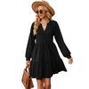 Vestido feminino primavera e outono cor sólida decote em v solto plissado emendado manga comprida vestidos