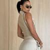 Top Assimétrico Sem Mangas de Couro Estilo Europeu e Americano para Mulheres com Decote Drapeado e Cintura Marcada