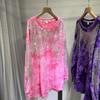 Moletom Plus Size Tie-Dye Degradê Heavy Drill para Mulheres - Top Outono de Manga Comprida Extra Grande