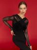 European and American Spring and Autumn Pure Color Mesh Cross Sexy Folded Long Sleeve Top
