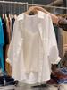 Women's Mid-Length White French Niche Shirt – Spring/Summer 2025 Loose Fit