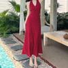 Red Retro Floral A-Line Suspender Dress - Women's Summer Vacation Beachwear