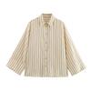 Discover the perfect addition to your spring wardrobe with this women's versatile striped wide-sleeve shirt. Crafted from high-quality polyester, this shirt boasts a loose fit that ensures comfort and style. The turn-down collar and uniquely tailored neckline offer a contemporary touch, making it suitable for various occasions. The wide sleeves add a fashion-forward element, while the classic stripe pattern ensures timeless appeal. Ideal for casual outings or even as a chic office look, this shirt is designed to elevate your everyday ensemble effortlessly.