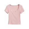 Summer 2025 European & American Style Ribbed Slim Fit U-Neck Short Sleeve Top