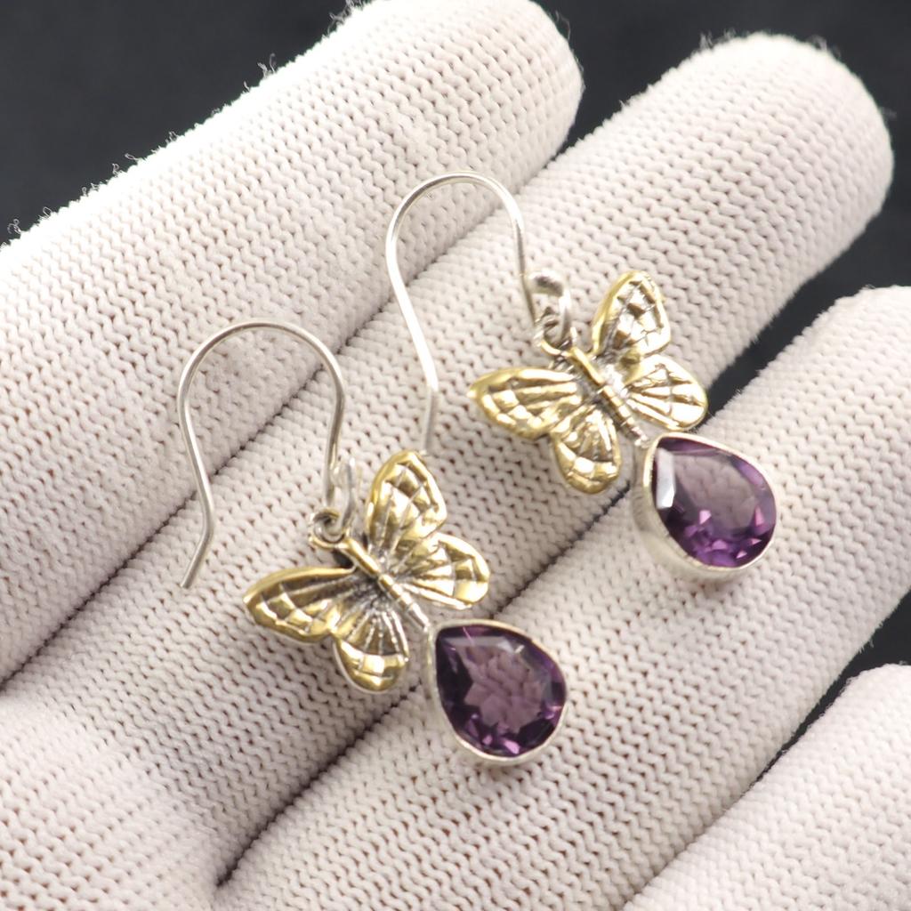 Natural Amethyst Gemstone 925 Sterling Silver Handmade Drop/Dangle Earrings 1.3" EE-155-3