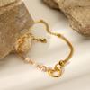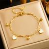 Design Original Exquisito Pulseira Branca de Madrepérola em Forma de Coração, Usável dos Dois Lados, Aço Titânio Banhado a Ouro 18K para Mulheres